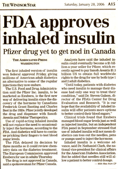 marketed as Exubera, is the first new way of delivering insulin since the