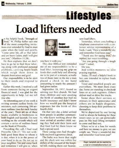 This clear Biblical text reminded me of my responsibility to be a load lifter,